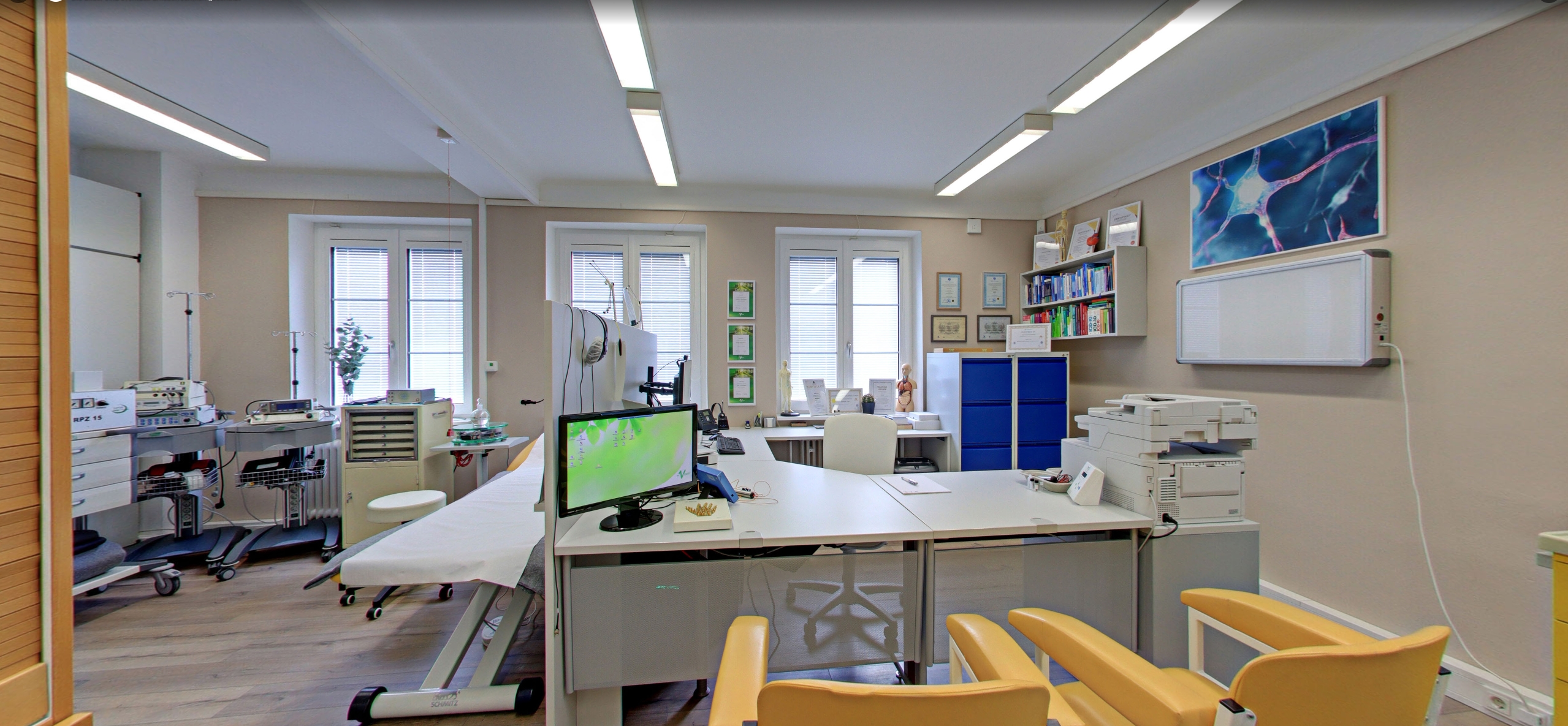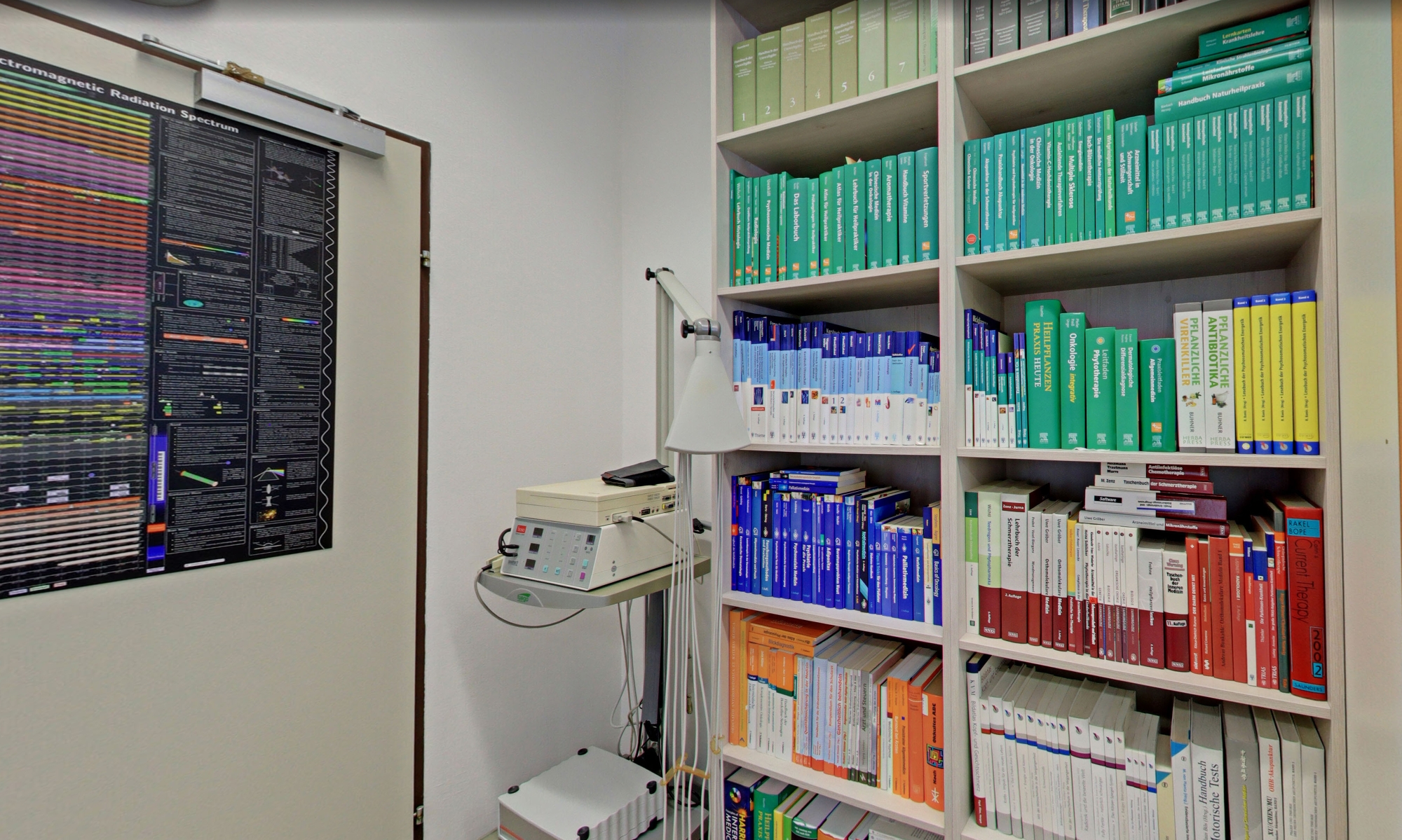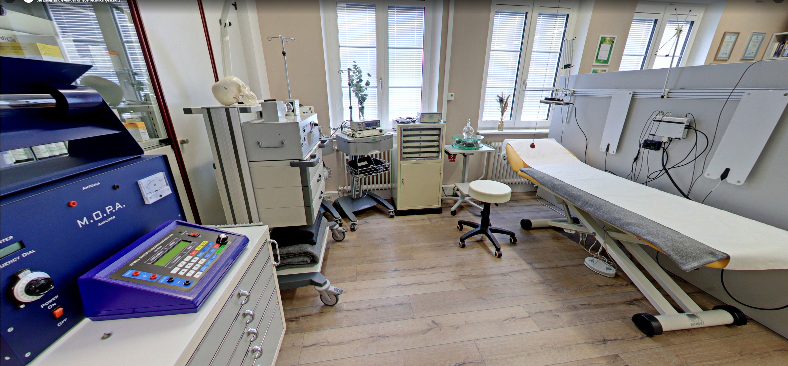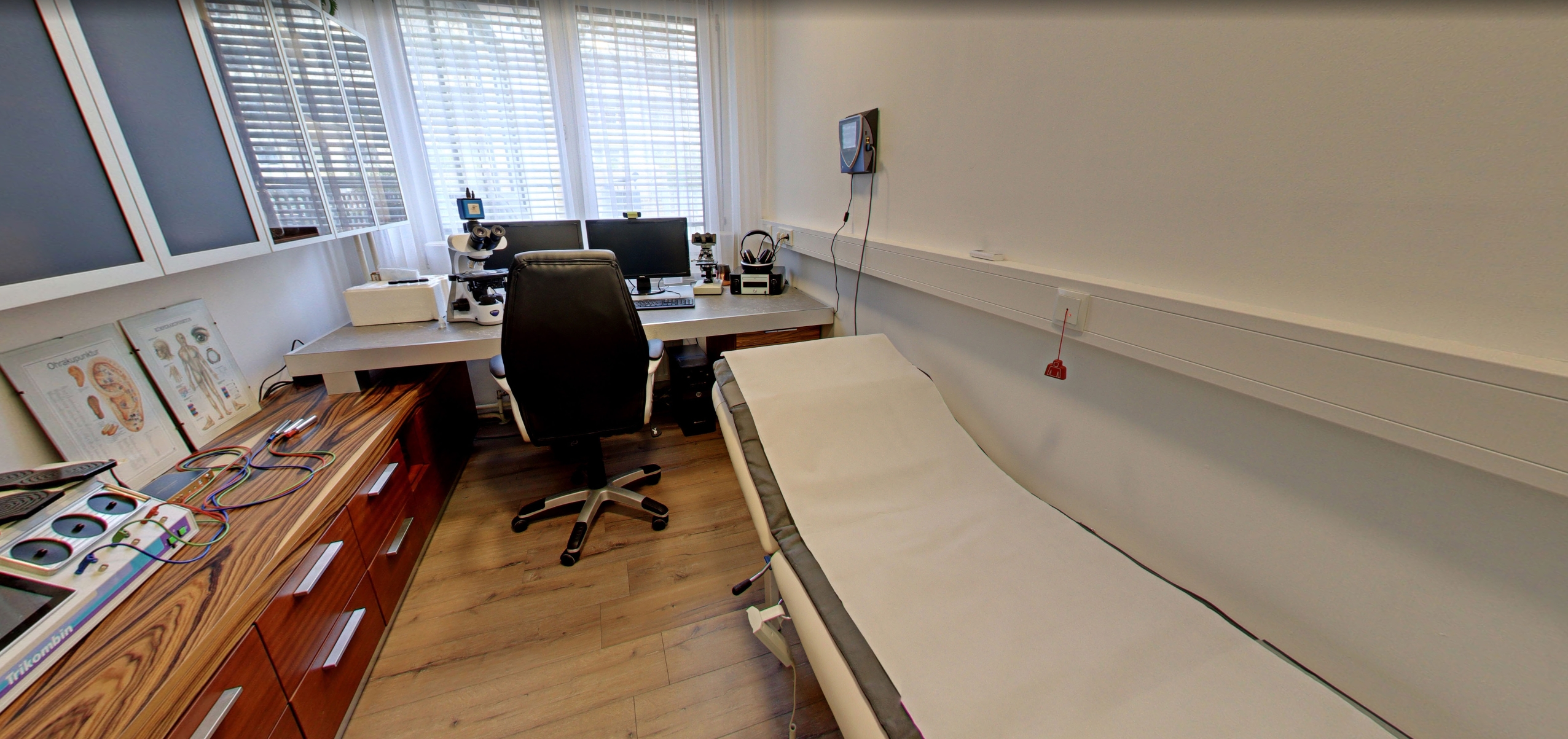 توجد في غرفة العلاج لدينا مساحة كافية لتطبيق العلاج بالترددات وللتشخيص المخبري.